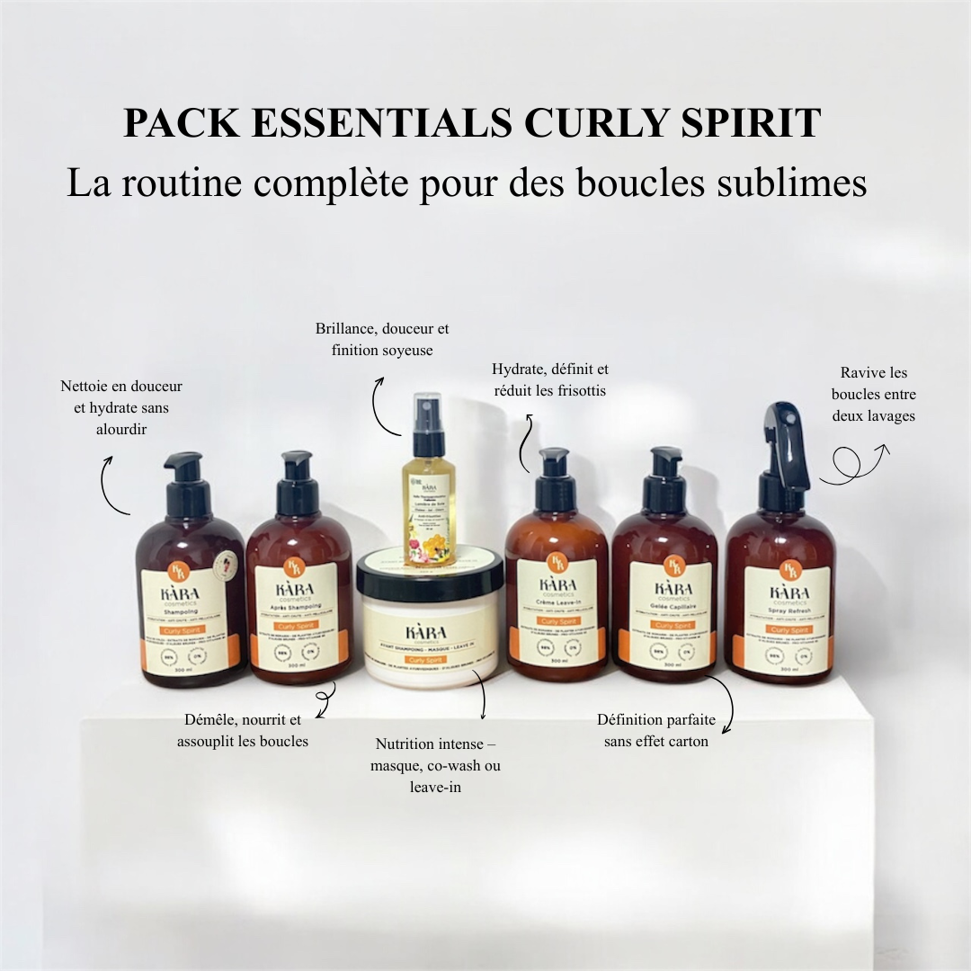 Le pack Essentials Curly Spirit, vous offre tous les produits dont vous avez besoin pour avoir de belles boucles. Tous ces produits, fonctionnent en synergie pour apporter de l’hydratation, et nourrir vos cheveux. Vos boucles sont ainsi bien définies, souples, brillantes et hydratées.